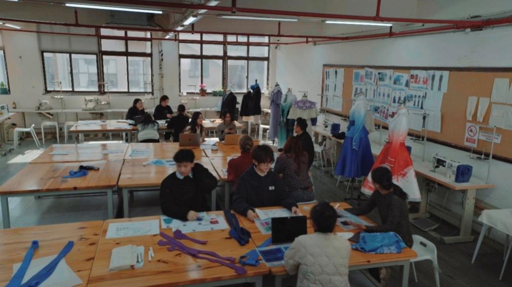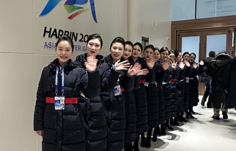 在亚冬会夺金颁奖舞台上,“幻境冰蓝”颁奖礼服和官员正装华丽亮相;东航“凌燕”礼仪志愿队身着系列合作服装,展现东方魅力,时尚设计和精湛工艺彰显文化底蕴,传递中国美学与赛事荣耀的氛围。赛场外,设计团队师生每日工作在各个场馆后台,为哈尔滨亚冬会人员提供现场服务,全力保障服装状态整洁良好,细心调整服装细节,让服装和穿着人员配合出最舒适默契状态,为这场盛会编织荣耀华彩。
