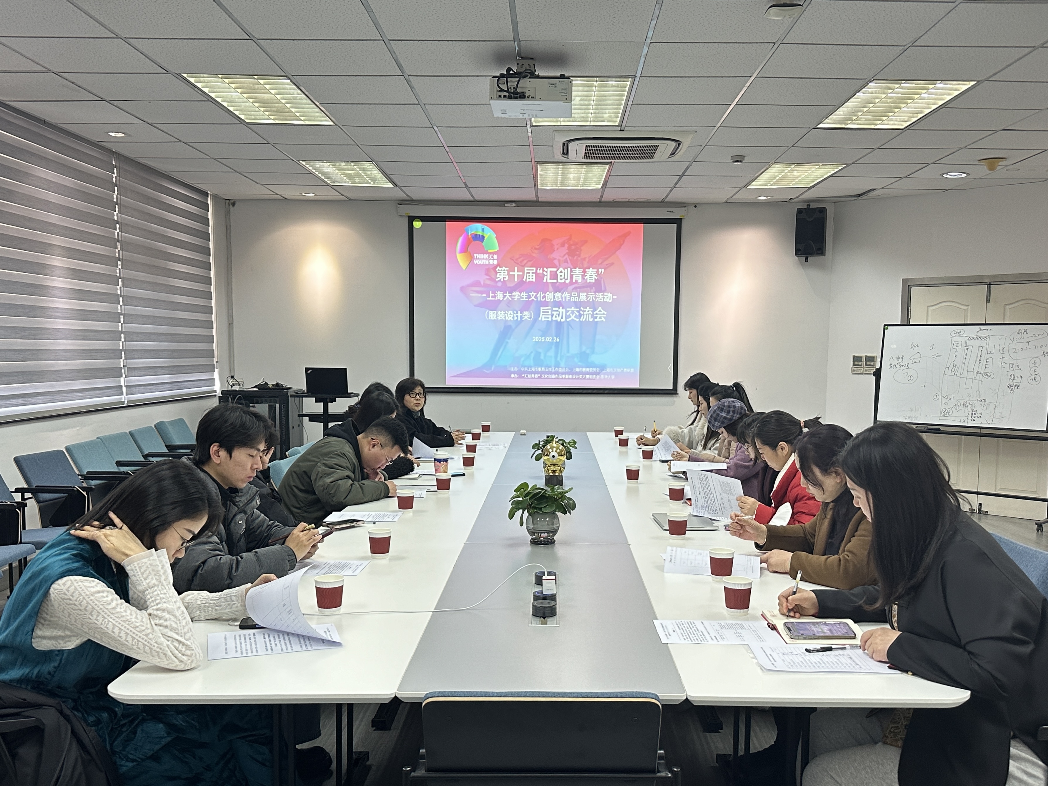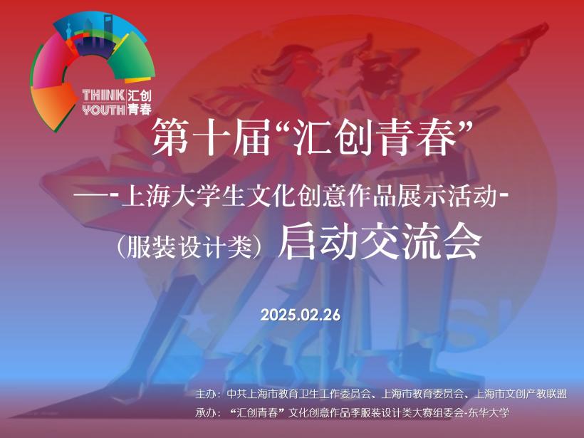 2月26日,由中共上海市教育卫生工作委员会、上海市教育委员会、上海市文创产教联盟主办,“汇创青春”文化创意作品季服装设计类大赛组委会-东华大学承办的第十届“汇创青春”上海大学生文化创意作品展示活动(服装设计类)启动交流会在东华大学延安路校区三教800召开。会议由服装与艺术设计学院副院长王朝晖主持。