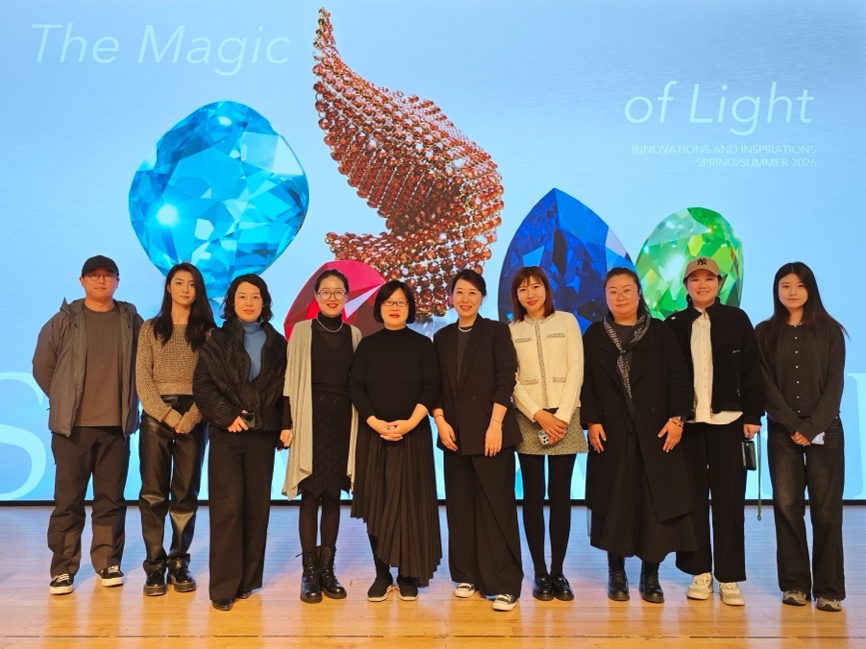 来自施华洛世奇的专家们围绕“纯澈光芒”“自由前沿”“悦动色彩”“光彩夺目”四大主题,系统解读了2026春夏施华洛世奇元素的色彩、材质与应用趋势,为服装、配饰及生活方式领域提供全新设计灵感。