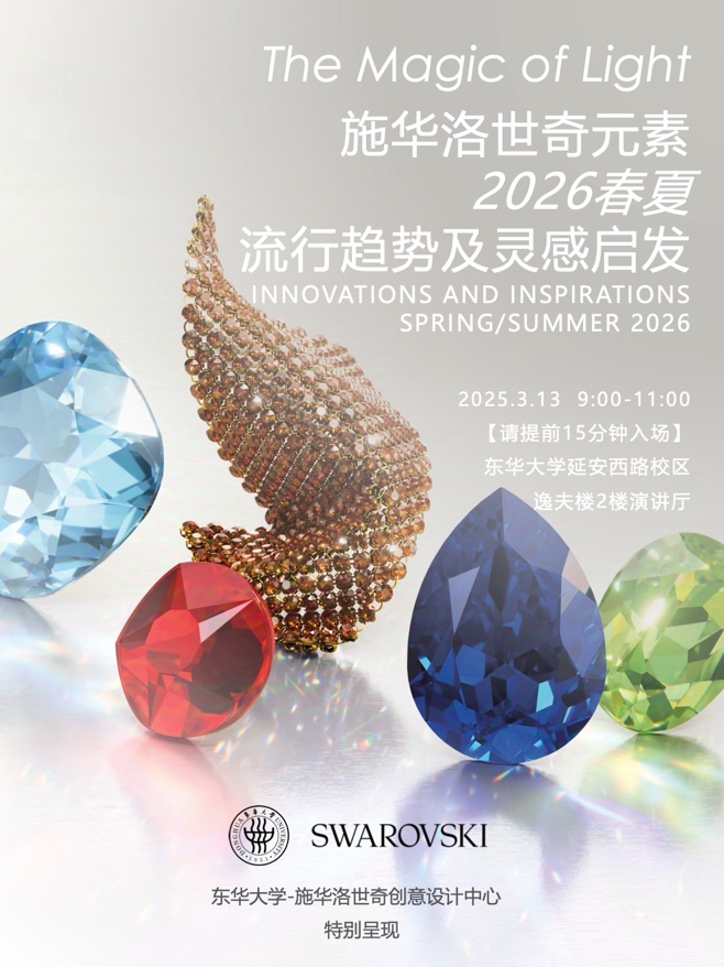 3月13日,由东华大学-施华洛世奇创意设计中心组织的《2026施华洛世奇元素流行趋势与灵感启发》专题讲座在东华大学逸夫楼演讲厅成功举办。