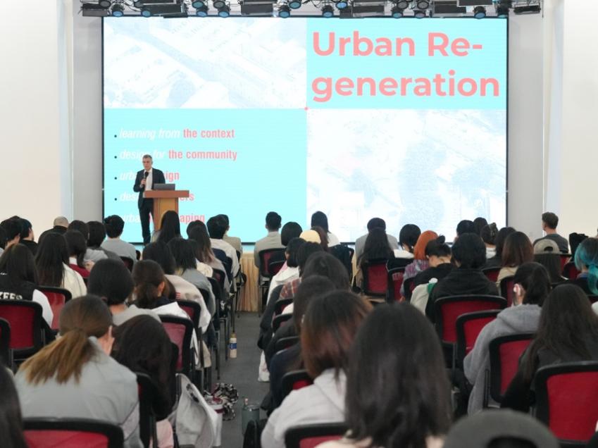 3月27日,为促进中意城市文化与创意交流,由意大利对外贸易委员会、上海设计之都促进中心联合发起意大利大师课在东华大学延安西路校区举行。意大利城市更新领域专家、欧洲设计学院Alessandro Casadei教授,做题为《城市更新-意大利传承、理解与修复的城市再生策略》专题讲座。