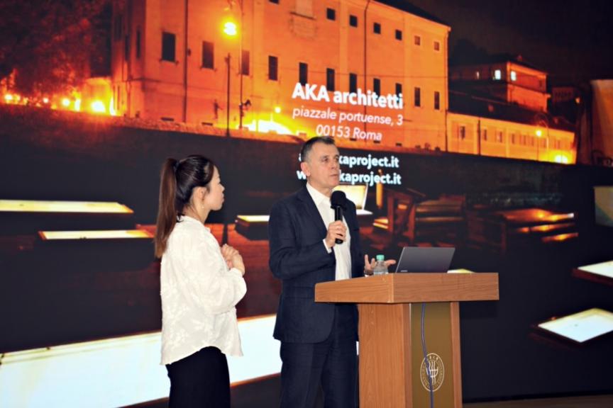 Alessandro Casadei教授做了城市更新主题讲座,以意大利城市更新实践为基础,探讨在应对城市化及社会多样性挑战的过程中,逐步将创新驱动、社区参与和文化传承作为城市更新的关键要素。他提出“五维设计法则”:在地语境中汲取灵感,强调城市设计需与历史、地理深度对话;以社区共创激活公共性,让市民成为空间运维的“共同作者”;打破尺度界限,通过宏观规划联动碎片化项目;将使用者视为公民,兼顾社会学、经济与人口变迁需求;将气候治理融入景观设计,构建韧性城市。他最后强调,城市不是建筑的集合,而是关系的网络。中国可探索本土化路径——将意大利“渐进式更新”思维与智慧城市技术结合,在高速发展中留存人文温度。