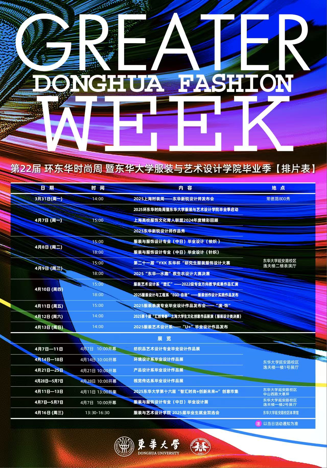第22届环东华时尚周暨东华大学服装与艺术设计学院毕业季排片表